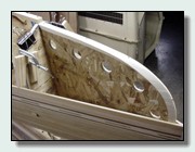 When a strip is installed and goes from the first form out to the stem, the stem must be shaped flat to receive the strip and provide a good solid gluing surface. The angle of the flat on the stem will change as you strip further up. The forward part of the stem will have a sharp angle until you get to the turn toward the keel, where the angle becomes much more shallow. This is called the rolling bevel. I have found it impossible to accurately shape the two sides of two stems by eye, using a spoke shave, block plane, belt sander, rasp, or trained beaver. The human hand, while a marvel of design, cannot be depended upon for the reproducible accuracy so easily obtained with a little guidance. Besides, the beaver left teeth marks....